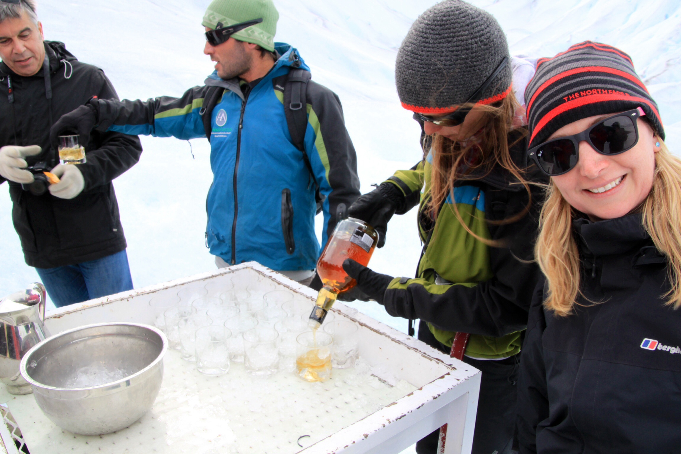 Donning our crampons, our group of around 15, led by Gisele, set off on our mini trek on the glacier itself. For the next hour and a half we walked up, down and over crevices, learning all the while about how it was formed and moves (yet remains the most stable) and Charlie even became group leader for a while!