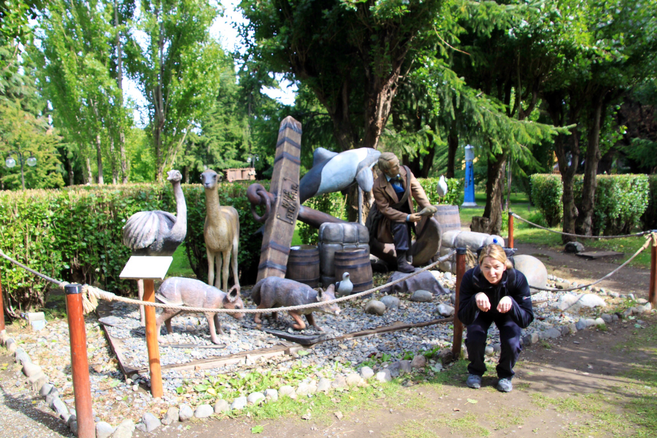 After more of Ariana’s cakes on our final morning and with 4 hours until we were due to be picked up to go the airport, we set off into town and found ourselves a rather bizarre park amongst the shops which we had missed on our previous visit. Around each corner and hidden by trees were various scenes celebrating the life of a famous Argentine explorer Señor Moreno and one including Charles Darwin. At first it all seemed a bit naff but with nothing else to do we kept walking wondering what eccentric scene we would see next and finally enjoyed the park so much we just had to join in…