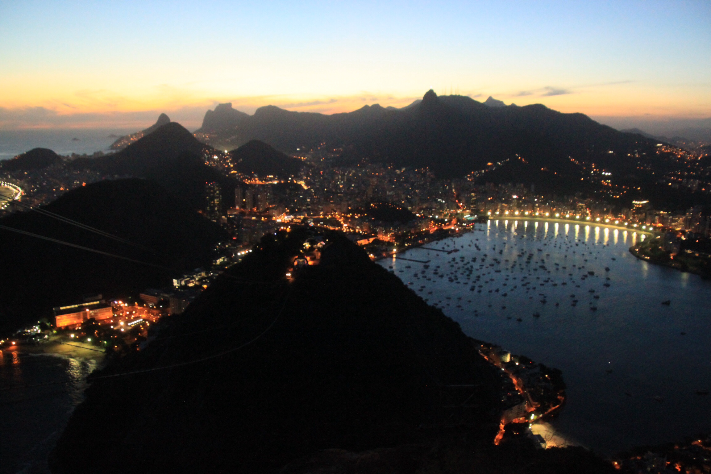 After a couple of hours sun plus a quick shower, we decided to make the most of the ideal sight-seeing weather and jumped into the hotel car to Sugar Loaf mountain to catch the sun set. Having speeded up the two cable cars to reach the summit, we were rewarded with views of Rio getting ready for the night as the sun went down behind Christ the Redeemer high on the other side of the city.