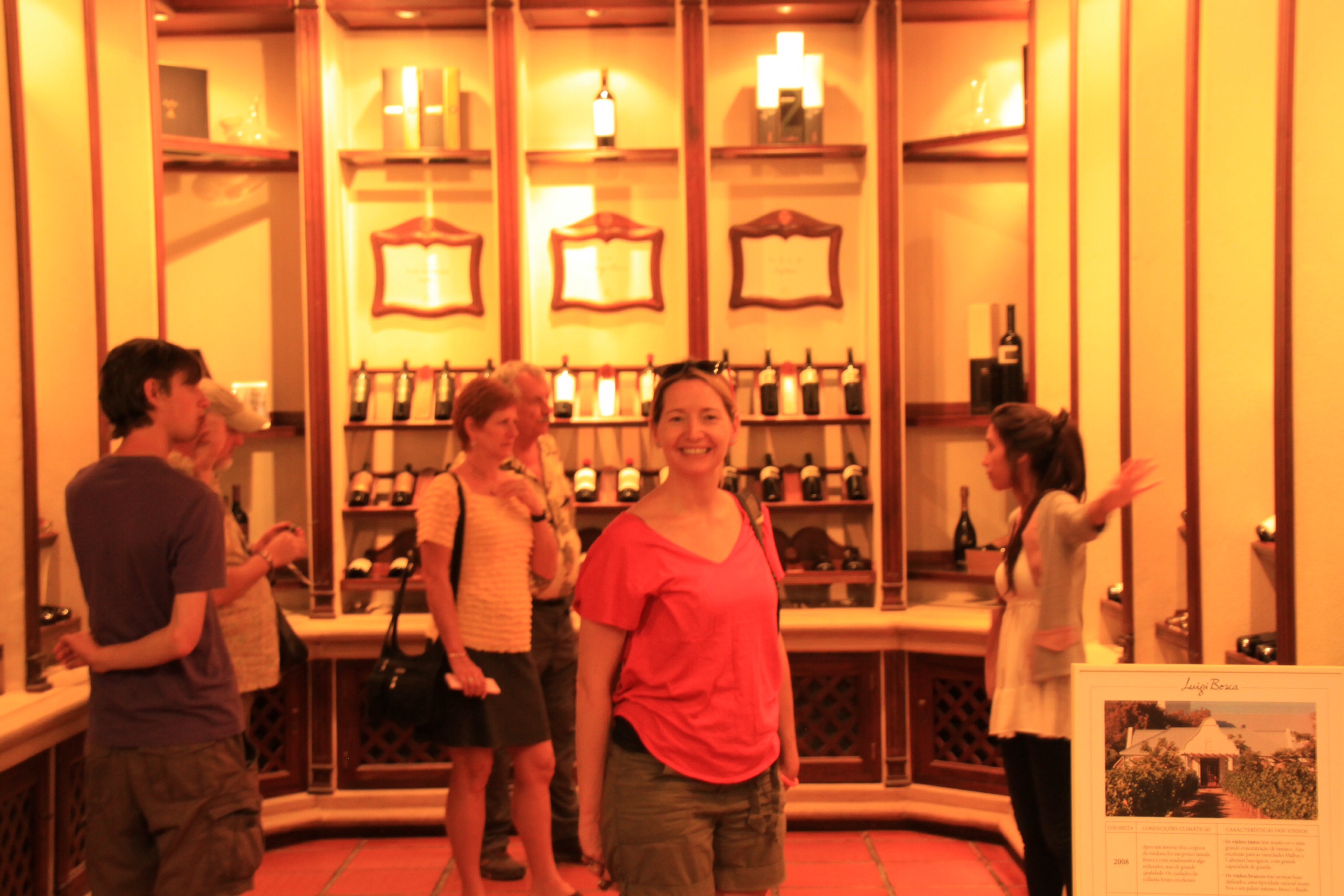 It’s probably a good job our ill-timed weekend arrival (when many vineyards are closed) meant we couldn’t visit more. But we spent a very wonderful Monday making the most of the day we had! On the recommendation of The Dares (thanks guys!), we were picked up at 8.45am for our Trout & Wine tour. After meeting our slightly mad young guide called Lorena and the rest of group (Thomas, Chris and Hannah from Manchester, Doug and Janet from Austin, Texas and Catherine and Bill from Colorado) we headed 30 mins out to the Lujan de Cuyo region and stopped for a liquid breakfast at a tiny, old winery called Mendel.