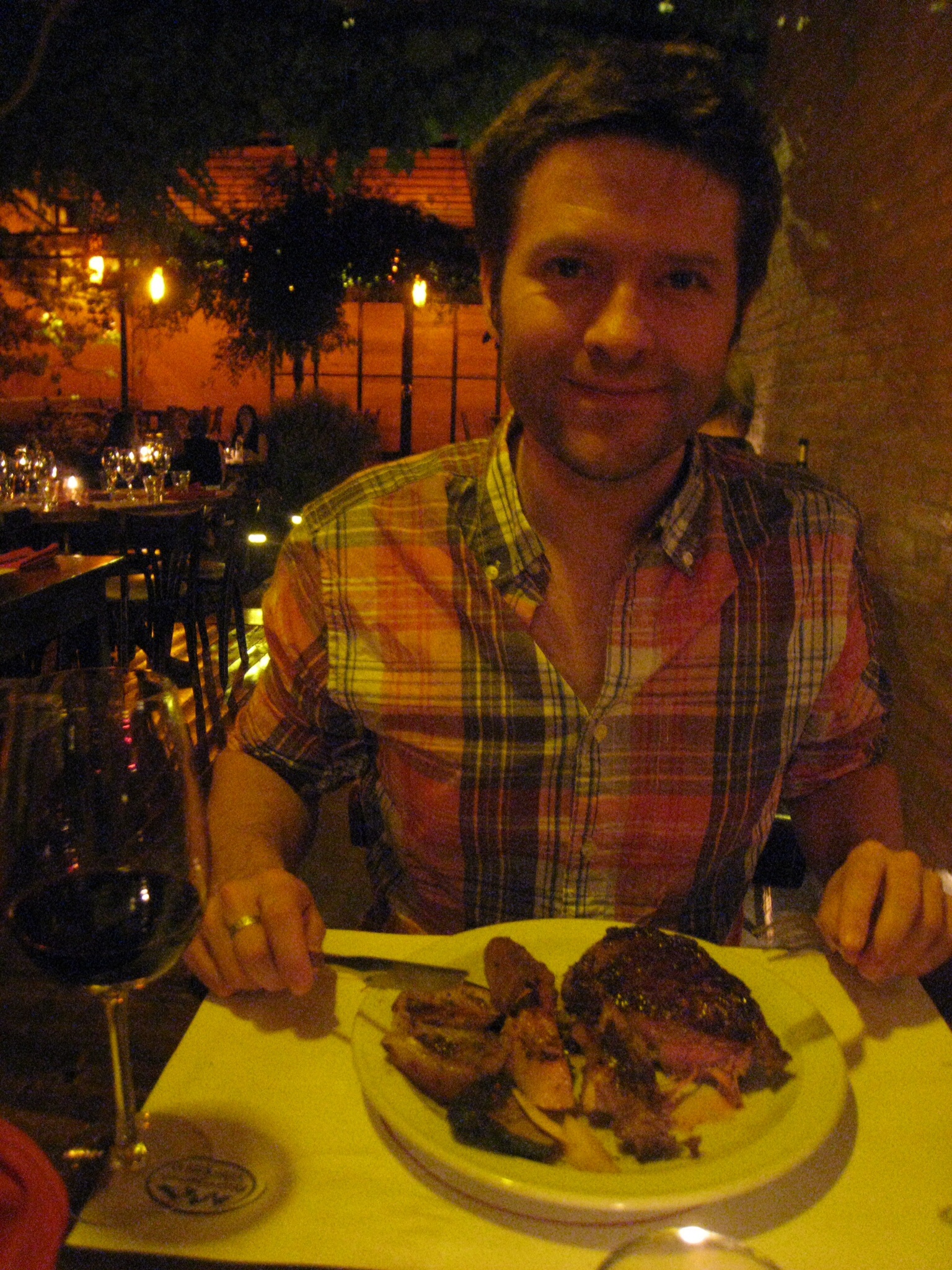 Proving its immense popularity, the queue for the restaurant snaked all the way down the street – and that was for the people who had already booked! We eventually got seated and were introduced to our waiter – a man with not a word of English and quite a few years on him but who was super friendly and thankfully warned us by waving his arms around that the starters were big enough for two! We started with grilled provolone cheese and ham (broadly speaking Charlie ate the cheese and Jase the ham), followed by two big Ojo de Bife and Papas Fritas which came surrounded with lots of little pots containing garlic, red pepper sauce etc. Of course all accompanied by the obligatory bottle of Malbec. Good job there was a little walk back!