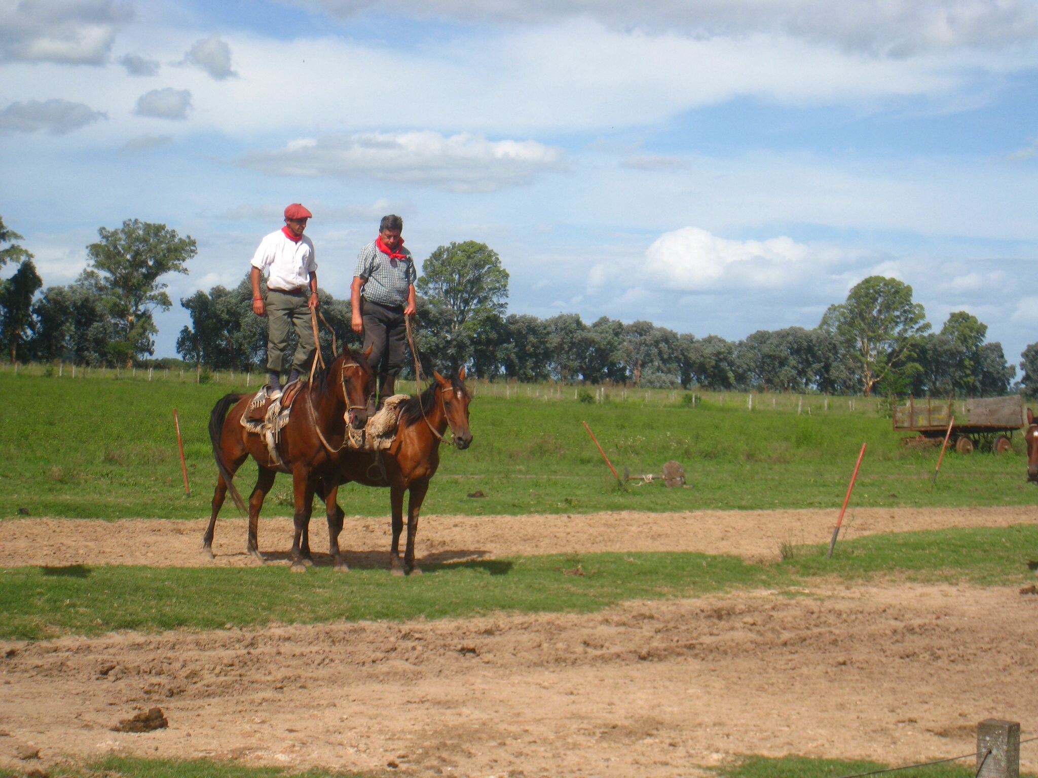 After dessert (traditional flan and very sweet coffee) and a short-lived attempt to minesweep some wine from the numerous tables who’d left theirs (?), we were herded over to the Horse Show. Sat in the shade by the side of a field, we watched as two gauchos aimed to show off their skills – including how to catch an ostrich, choose a good horse (slalom and race), get your horse to trust you (to the point you can lie on it) and get a kiss from a lady (collect a small hook at speed). Luckily Charlie didn’t have to kiss one of them otherwise Jase, as her husband, would have had to have kissed the horse.