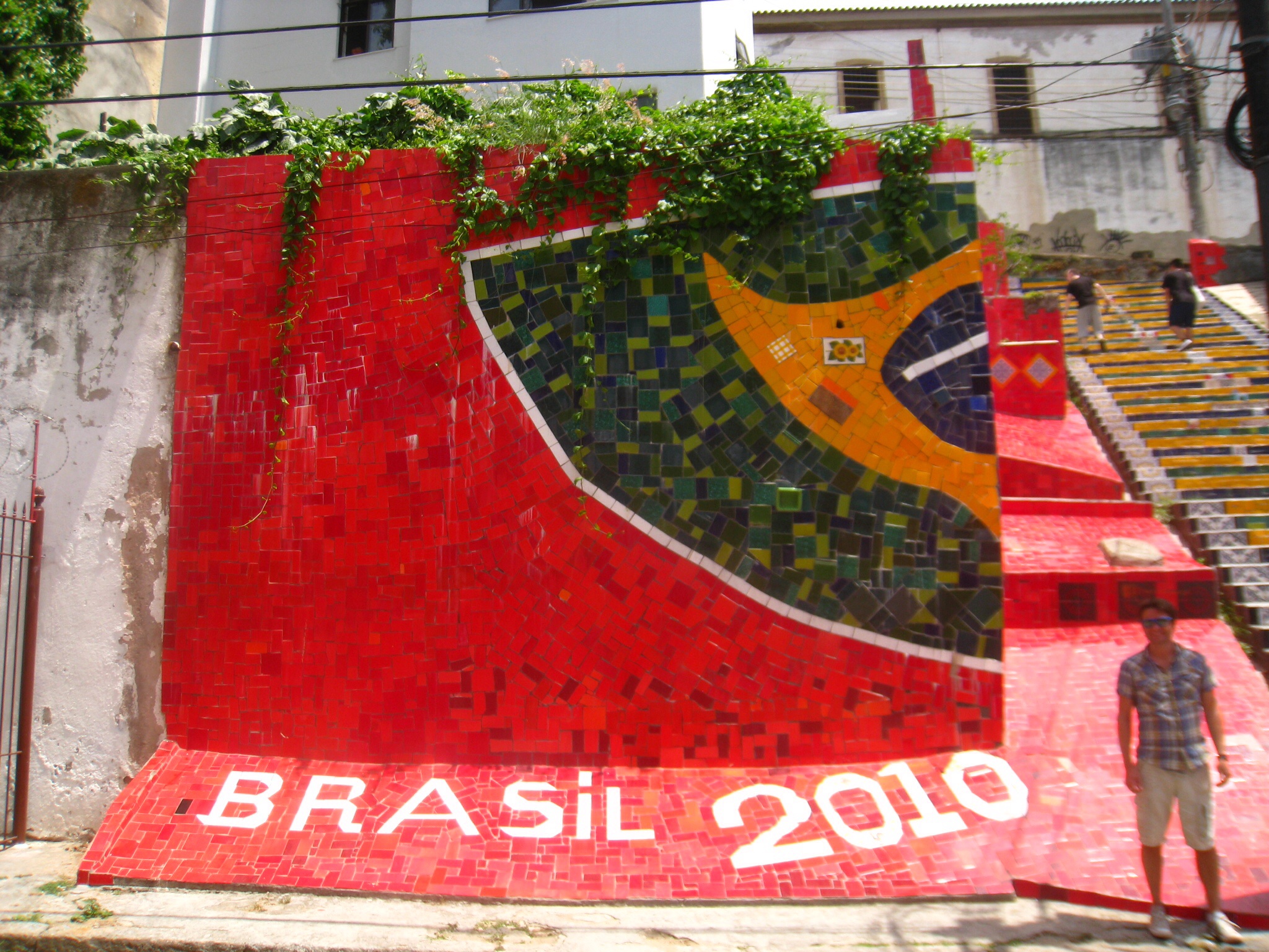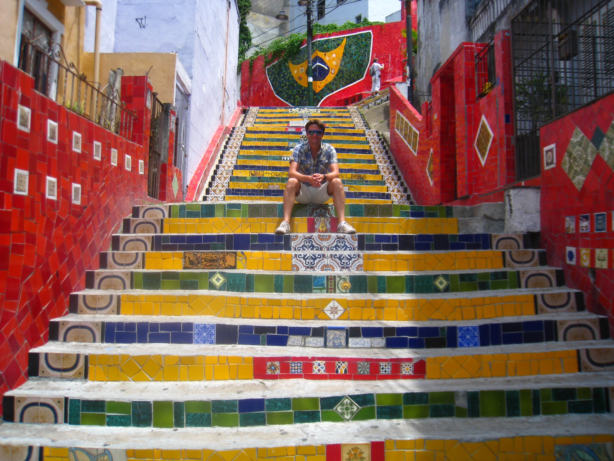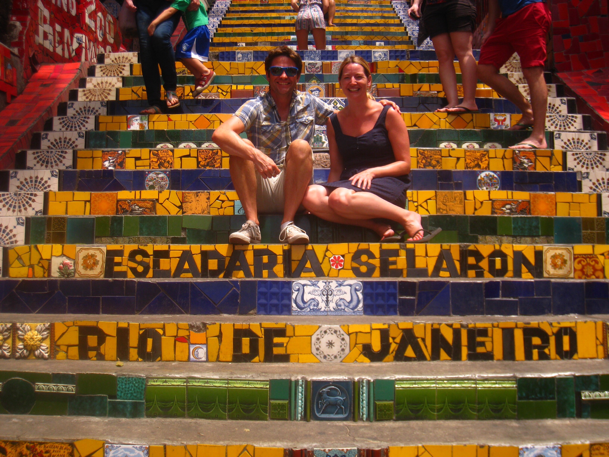With the Carmelitos bloco party not starting until 3pm we started off our day with breakfast at Cafecito. It overlooked the street and we could sense the anticipation in the air as everyone readied themselves for the party and many were already in fancy dress. Fully fed we headed to the nearby Lapa neighbourhood to see Escadaria Selaron, the result a chilean artists work who lived by the steps until he died last year and who, as the story goes, spent 20 years working on the tiled mosaic with people all over the world sending him pieces to add to his masterpiece on the 215 stairs.