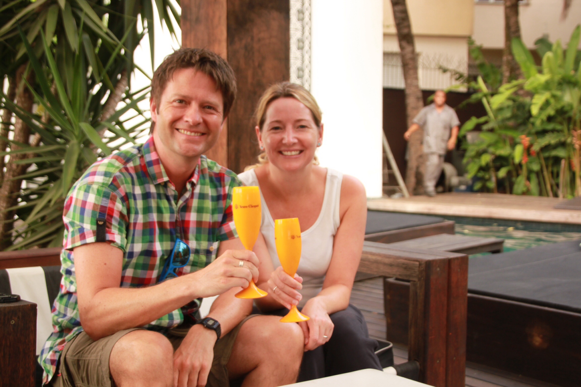 Once back at the pool, the party actually passed under our terrace so our last few hours were spent swaying to the drums followed by an early dinner on the pool side terrace washed down with champagne (courtesy of mum and dad fitzjohn). We toasted the end of great adventures talking already about where to go next – good times!